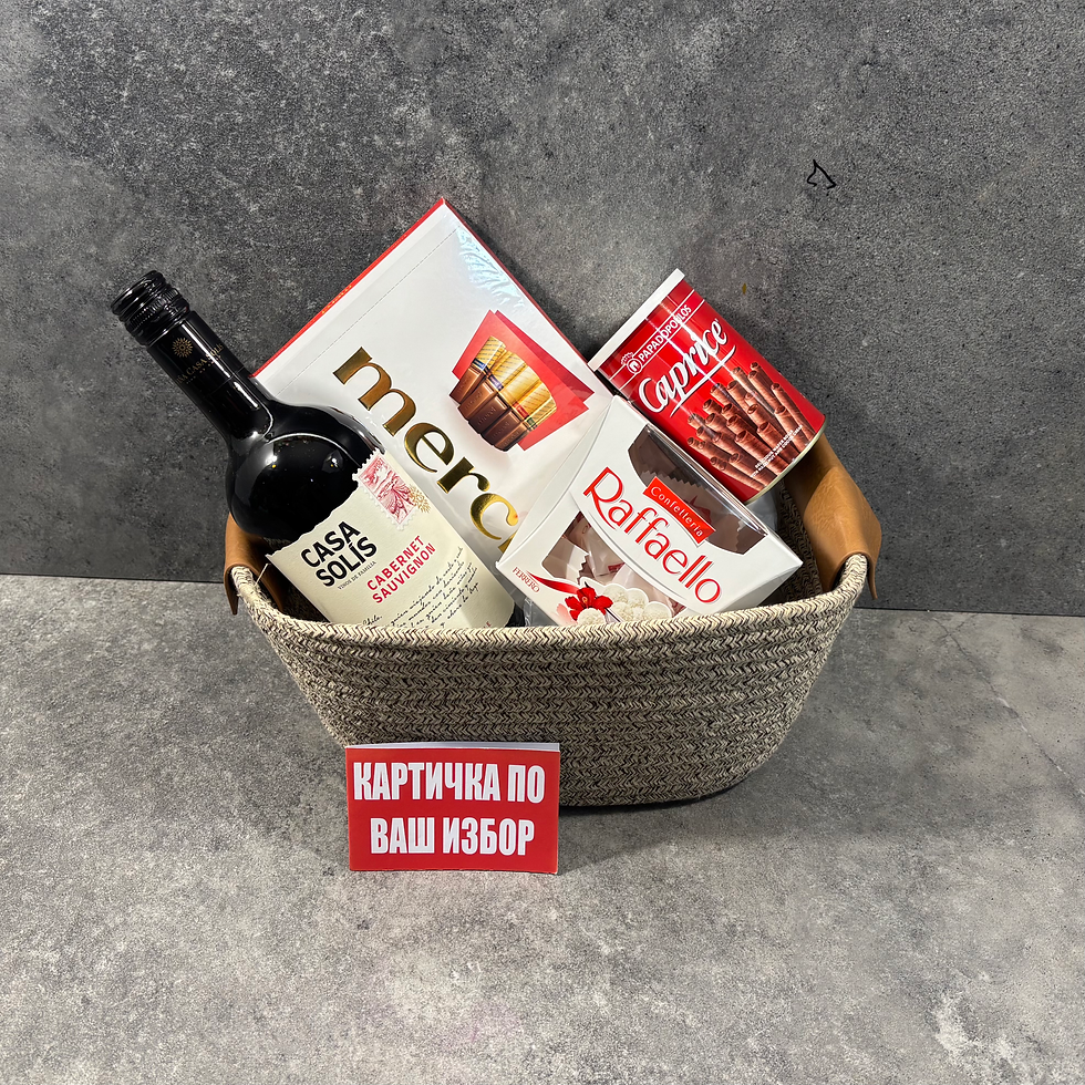 НАЛЕЙ МИ ВИНО - Напитка, 2 лакомства, 2 подаръка, контейнер и картичка